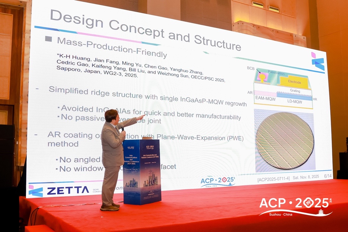 作为光模块核心器件,高速EML芯片长期依赖进口。在2025年光电子与通信会议(OECC)上,泽达半导体宣布成功开发适用于大规模生产的100G PAM4电吸收调制激光器(EML),标志着高速光通信芯片量产化取得关键进展。
